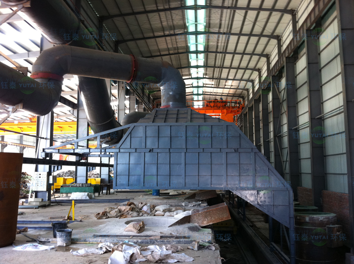 中頻爐除塵器是目前國(guó)內(nèi)處理爐內(nèi)煙塵時(shí)常采用的除塵設(shè)備,根據(jù)電爐產(chǎn)生的煙塵具有細(xì)且粘的特點(diǎn),為了袋式除塵器在適當(dāng)?shù)淖枇λ较抡9ぷ?,要求電爐除塵器應(yīng)具有較強(qiáng)的清灰能力,因此除塵設(shè)備選用了長(zhǎng)袋低壓大型脈沖袋式除塵器。大型電爐袋式除塵器已在電