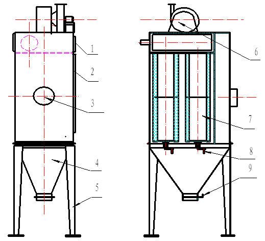 濾筒除塵器是一種比較先進(jìn)的過濾設(shè)備,優(yōu)點(diǎn)是除塵效率高,設(shè)備體積小,過濾面積大,過濾風(fēng)速低,噪音低等多種優(yōu)點(diǎn).被過濾粉塵僅停留在濾料超細(xì)纖維層的外表,所以大大減少了過濾阻力,節(jié)省耗電30%以上,節(jié)能效果顯著,并且清灰十分徹底.同時(shí)也解決了超細(xì)粉塵,纖維性粉