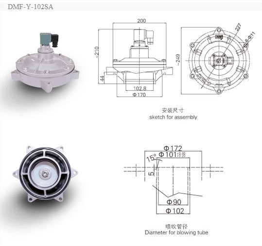 DMF-Y型電磁脈沖閥為淹沒(méi)式閥(亦稱(chēng)嵌入式閥),它直接安裝在分氣箱上,具有更好的流通特性。壓力損失有所下降,適合于氣源壓力較低的工作場(chǎng)合。