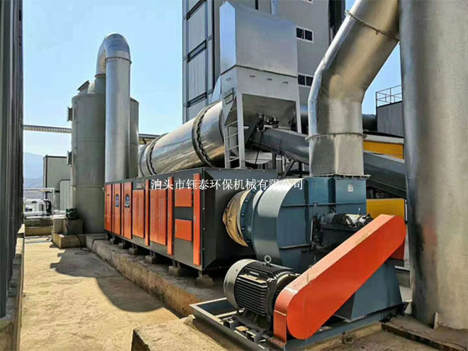 瀝青系統(tǒng)瀝青煙及有害氣體處理,采用高效旋流噴淋塔+干式過濾器+UV光氧催化設(shè)備多級瀝青煙處理裝置