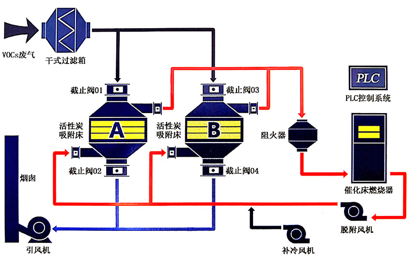 活性炭吸附濃縮+催化燃燒脫附裝置