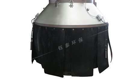 溜筒出口處的吸塵罩為多層結(jié)構(gòu),內(nèi)層為由皮帶膠組成的耐磨性能好、有一定相對硬度且具柔性的圍裙。皮帶膠圍裙主要用于緩解高速物料帶來的沖擊,緩沖高速氣流帶來的粉塵急速擴(kuò)散。吸塵罩的皮帶膠圍裙也起支撐作用,可以避免由于負(fù)壓作用,外層帆布裙被吸扁,碰到料位檢測裝置導(dǎo)致誤報(bào)信號或者在溜筒出料口干擾物料流動。吸塵罩外層為雙重帆布圍裙,帆布裙的內(nèi)層長度需比皮帶膠圍裙大,需完全罩住皮帶膠圍裙。帆布裙外層比內(nèi)層略大,需覆蓋住溜筒出口處的物料。雙重結(jié)構(gòu)主要用于控制粉塵外揚(yáng)及外部風(fēng)力作用將粉塵揚(yáng)起擴(kuò)散。整個吸塵罩在物料面和溜筒出口間構(gòu)成一個相對密閉的空間,防止粉塵外溢。